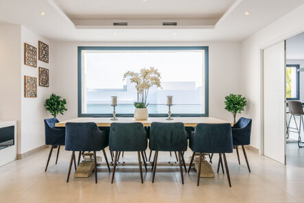 Large size rooms, wall-to-wall and floor-to-ceiling windows, wonderful covered and uncovered terraces and solarium. 6 bed with 6 bathroom + areas for gymnasium or games room. The gardens and private pools finish off what will be the perfect balance to modern living.